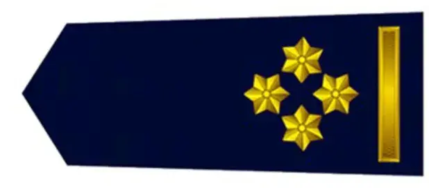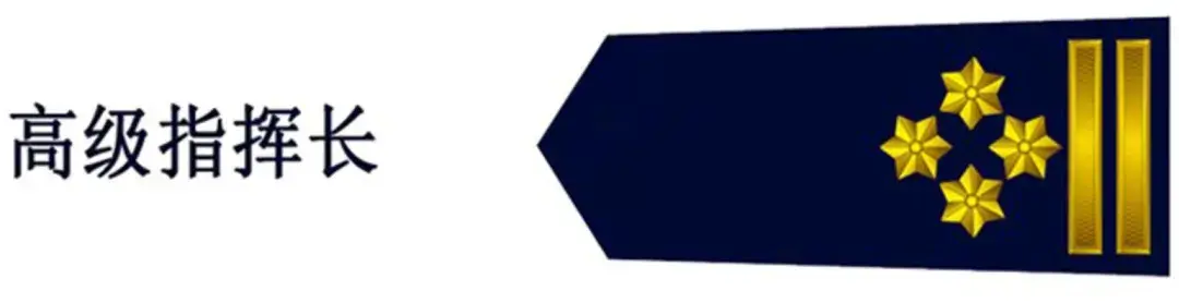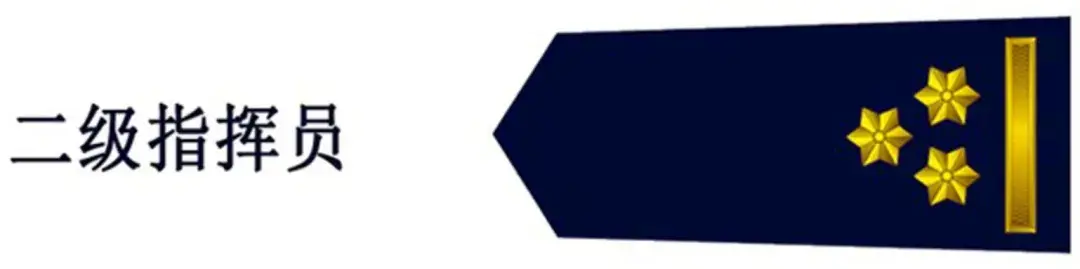 指挥长、指挥员衔标志由金黄色横杠和金黄色六角星花组成。