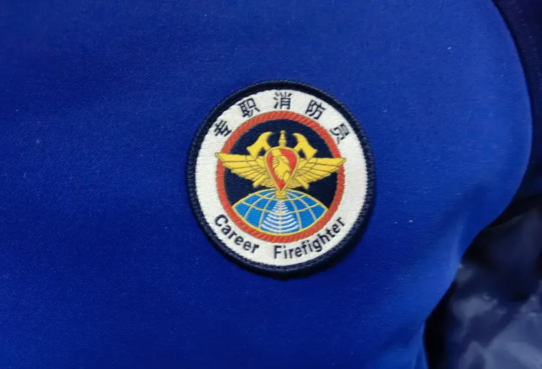 四级消防士衔标志缀钉一枚徽标和一道细横杠