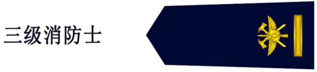 初级政府专职消防员肩章:各级消防救援队伍所属的工作时间未达到2年的政府专职消防员、工作时间未达到6年的消防文员。