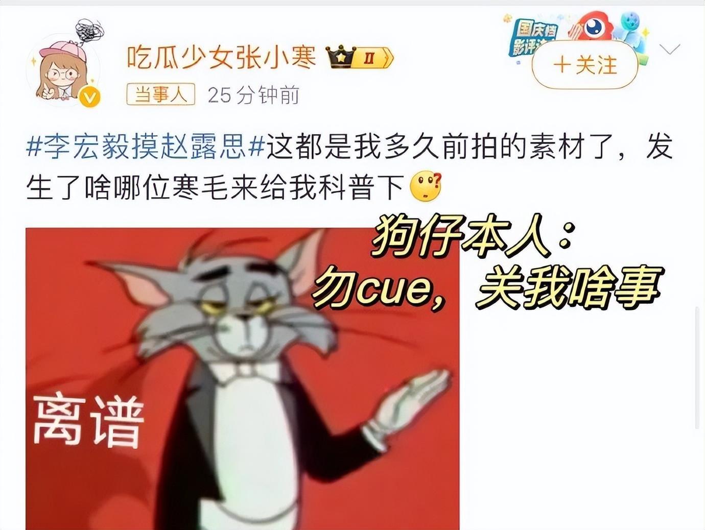 吃瓜网友吃着吃着瓜,发现这个#李宏毅摸赵露思#话题的主持人@香豆课代表;