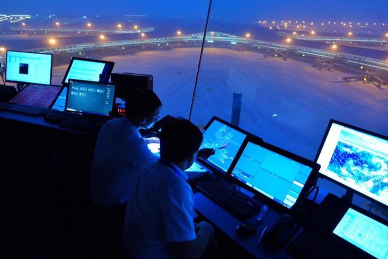 塔台管制员可以从塔台中看到飞机着陆灯,但是很不清楚。