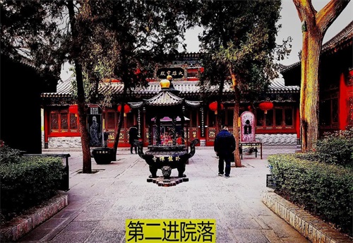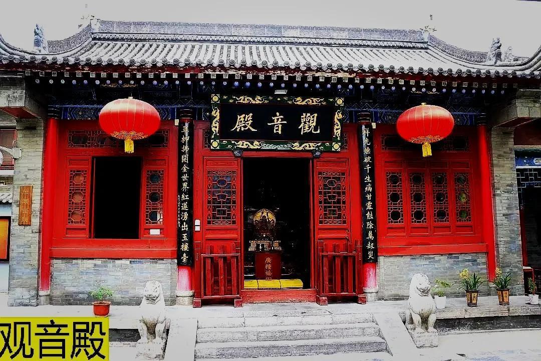 韦陀菩萨的对面就是第二进院落,主殿是大雄宝殿。殿前的两块碑十分醒目,左侧是唐代吴道子画的观音像,虽不是真迹,但菩萨端庄的容颜,飘逸的神姿,脚踏祥云的动感,也让人望而惊叹。