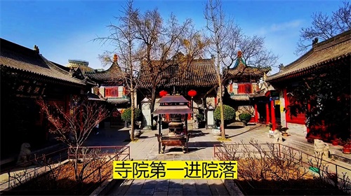 拜过山门殿,就来到第一进院落,主殿是天王殿,主轴线上的第二座佛殿。两侧有钟楼和鼓楼还有配殿,两边的回廊墙壁上有罗汉画像,惟妙惟肖,精美绝伦。