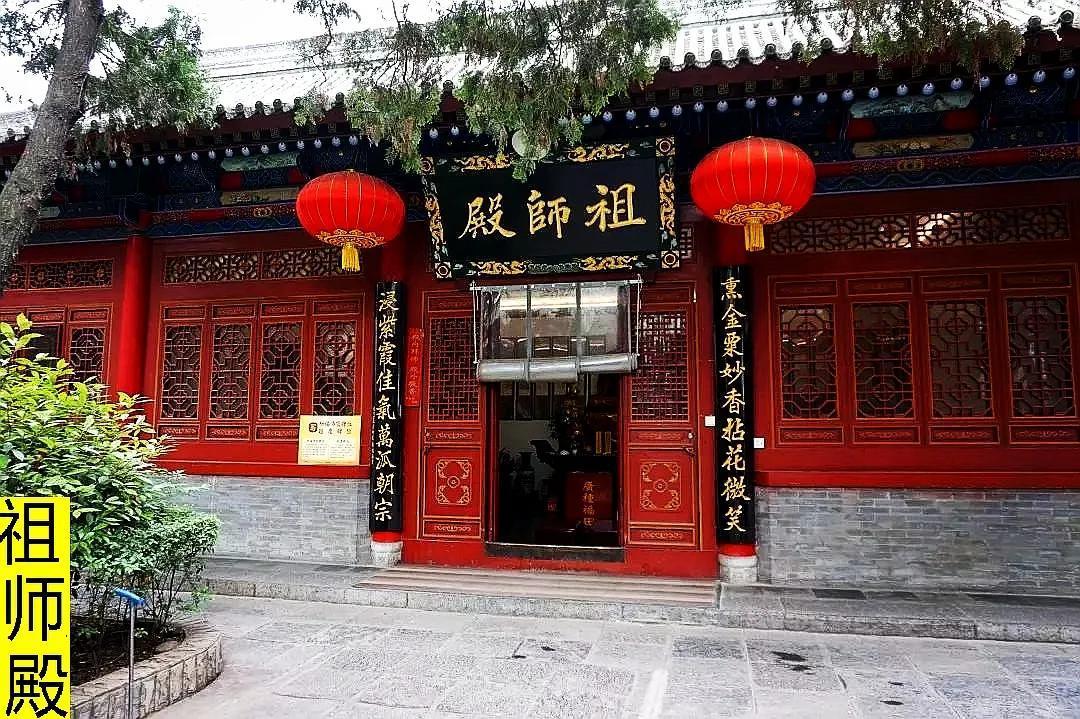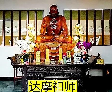 大雄宝殿的两侧有配殿,左侧是祖师殿,楹联禅意浓,耐人寻味:熏金粟妙香拈花微笑,浸紫霞佳气万派朝宗。殿内供奉的是达摩祖师,佛传禅宗第二十八祖,为中国禅宗的始祖,故中国的禅宗又称达摩宗。是《洗髓经》、《易筋经》的撰写者。南朝梁武帝信佛,达摩至南朝都城建业会梁武帝,面谈不契,遂一苇渡江,北上北魏都城洛阳,后卓锡嵩山少林寺,面壁九年,传衣钵于慧可,后出禹门游化终身。