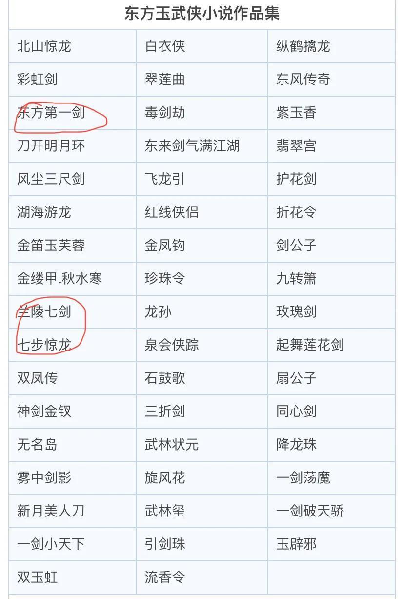 东方玉武侠小说简介(一)---东方第一剑、七步惊龙、兰陵七剑