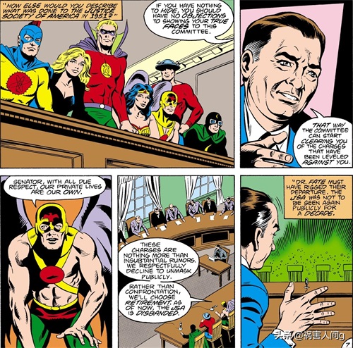 在1951年DC宇宙中发生了一个重要事件,由于佩尔.德加顿的阴谋计划美国政府众议院对正义协会召开了听证会,正义协会被批解散。(原因涉及到政治体制问题,这里就不详细说明了)