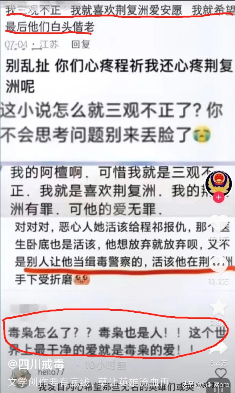 而在部分网友对该小说表示出反对意见后,有部分粉丝仍沉湎于女主与毒枭的爱情中,甚至在社交平台公然发布诋毁缉毒警察的言论: