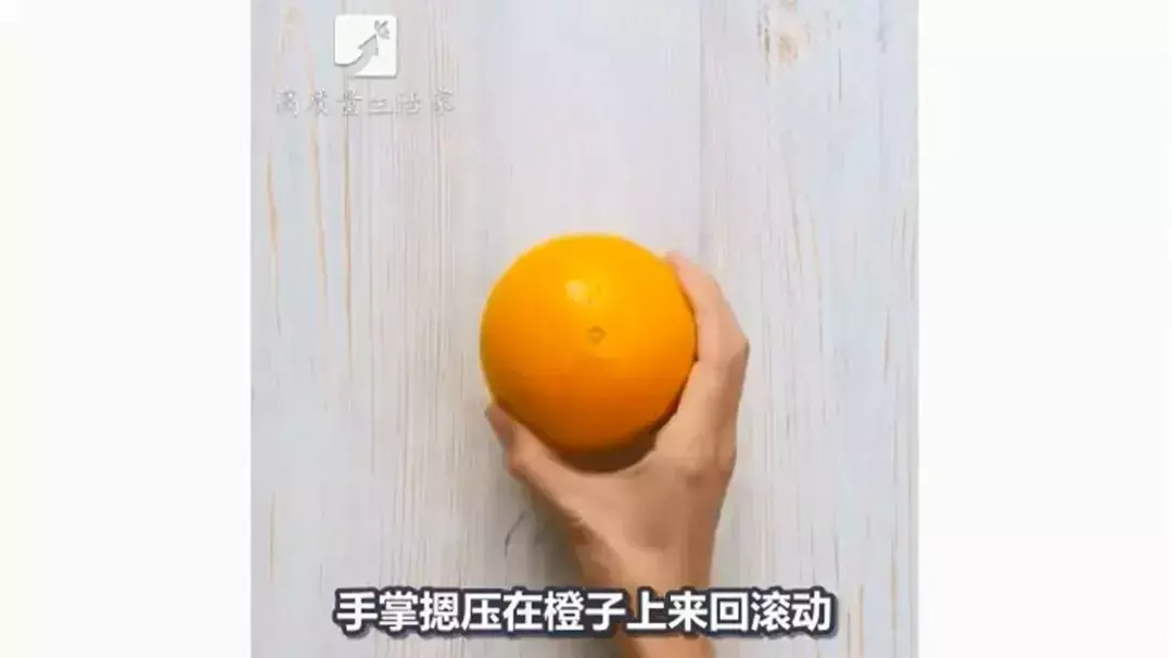 手掌摁压在橙子上来回滚动。