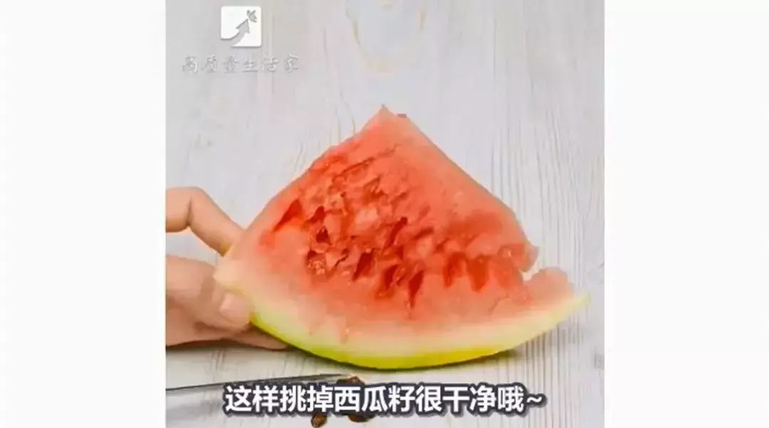 这样挑掉西瓜籽很干净,而且西瓜肉里面也没有西瓜籽~