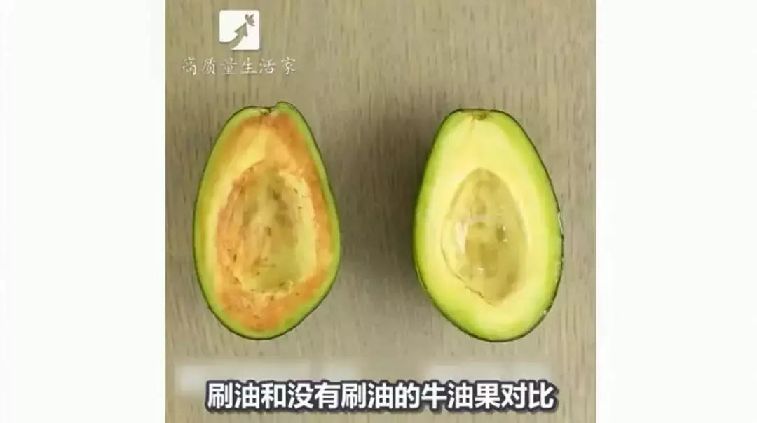 刷油和没有刷油的牛油果对比。
