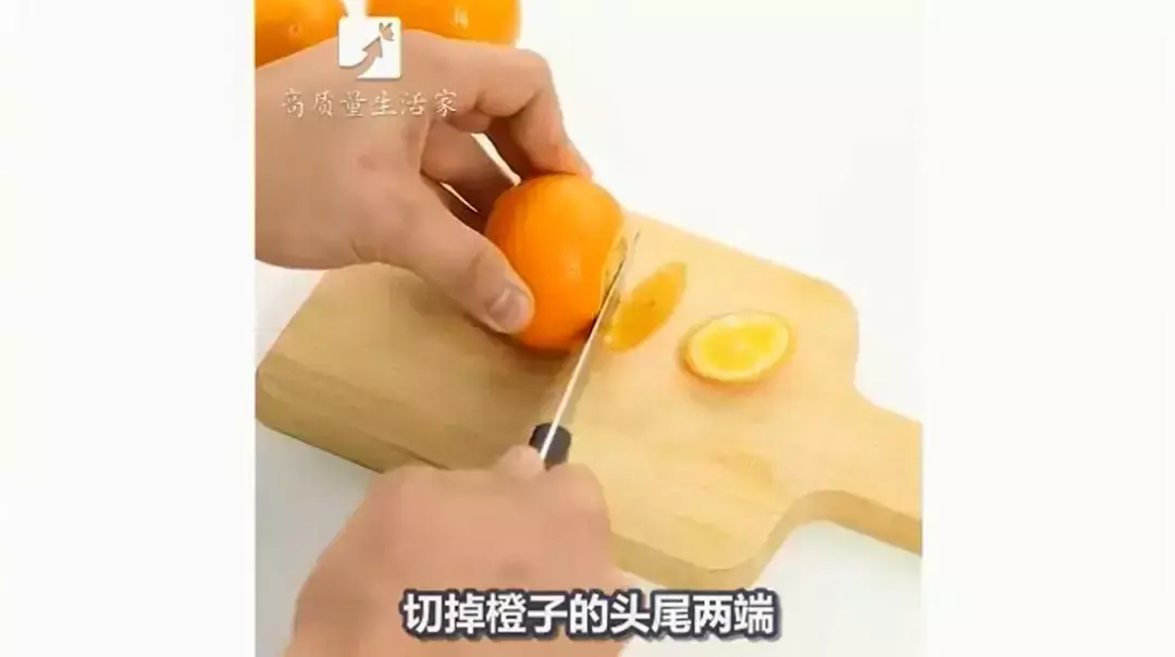 切掉橙子的头尾两端。