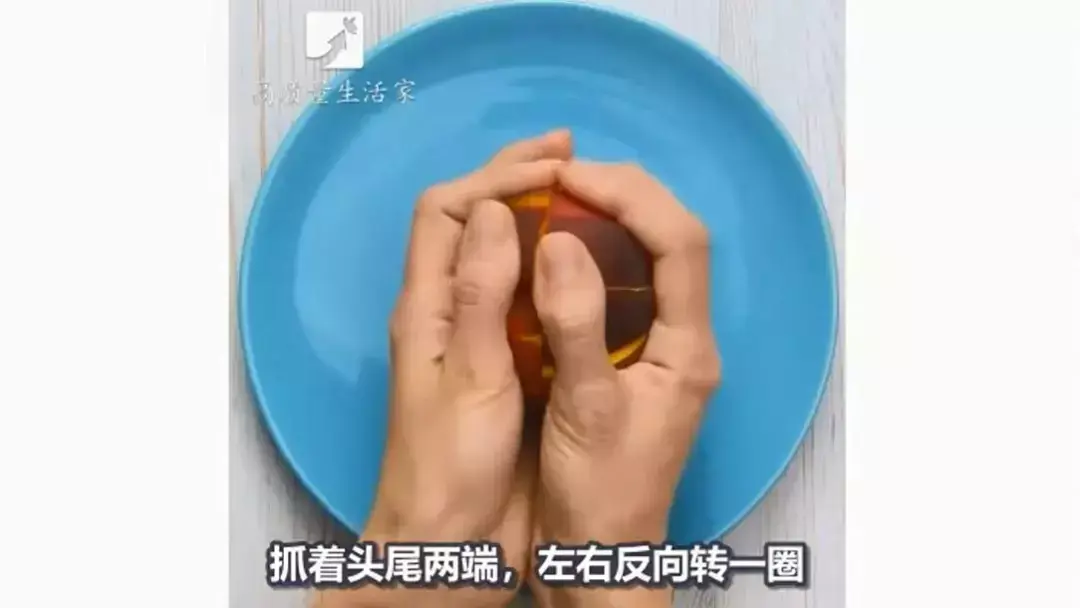翻滚过后的橙皮很容易剥离。