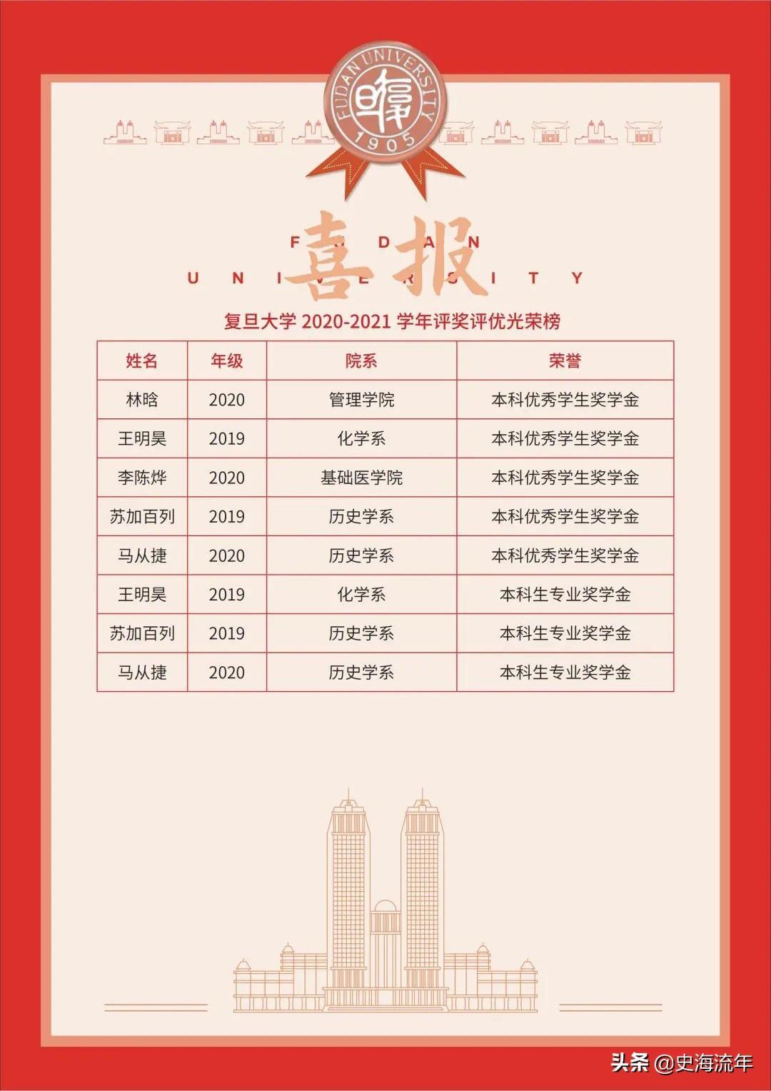 二、复旦大学2020—2021学年评奖评优光荣榜(温州育英国际实验学校)