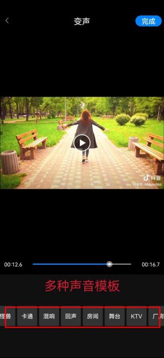 修改完毕之后,点击右上方的【完成】,你就可以得到一个变过声的视频原件啦。操作非常方便。