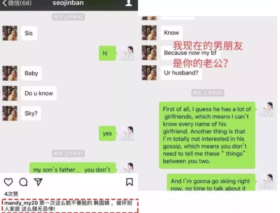 故事的最后,是护花心切的男主角sky出面了,表示自己与Mandy没有交往多少日子,但她却想靠孩子上位,上位不成就故意朝潘南奎泼脏水。