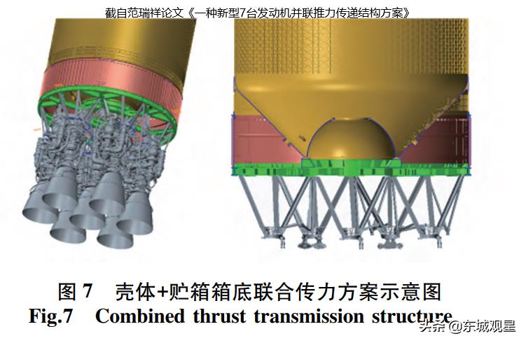 据公开文献报道,921火箭的发动机并联方案已经得到了初步验证,并专门设计了新型的传力结构。以前的长征火箭,发动机的动力都是传递给火箭外壳,带动火箭起飞的。新的设计把力量均匀地传递给外壳和燃料储箱,让火箭受力更均匀,从而进一步减轻了火箭自身的重量,有利于提高运力。