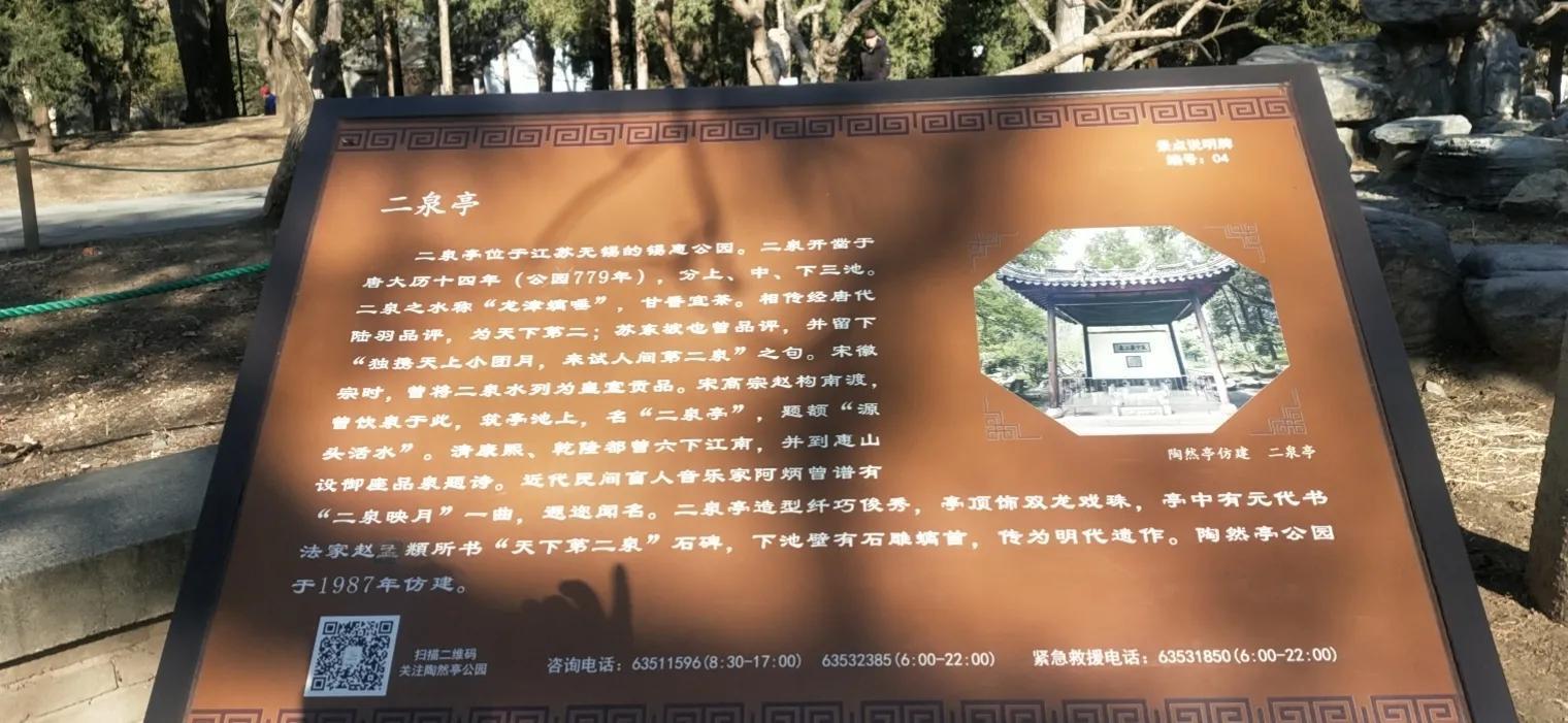 ⛩️二泉亭:在无锡惠山,因傍“天下第二泉”修建而得名。陶然亭里此亭是1985年仿建的。二泉水系包括上、中、下三池,上、中池在泉亭内。上池圆形,深1.94米,上有八角形石栏,其边长各0.80米;中池毗邻上池,两者相距仅0.65米,方形,深约1米,其上的方形石栏每边长1.40米。两池呈天圆地方之像,又在池的上方凿水口相通。由于宋高宗赵构在绍兴辛巳年(1161年),曾在此酌泉,"故其后设栏卫护",但现在所存青石围栏,均系明代遗物。