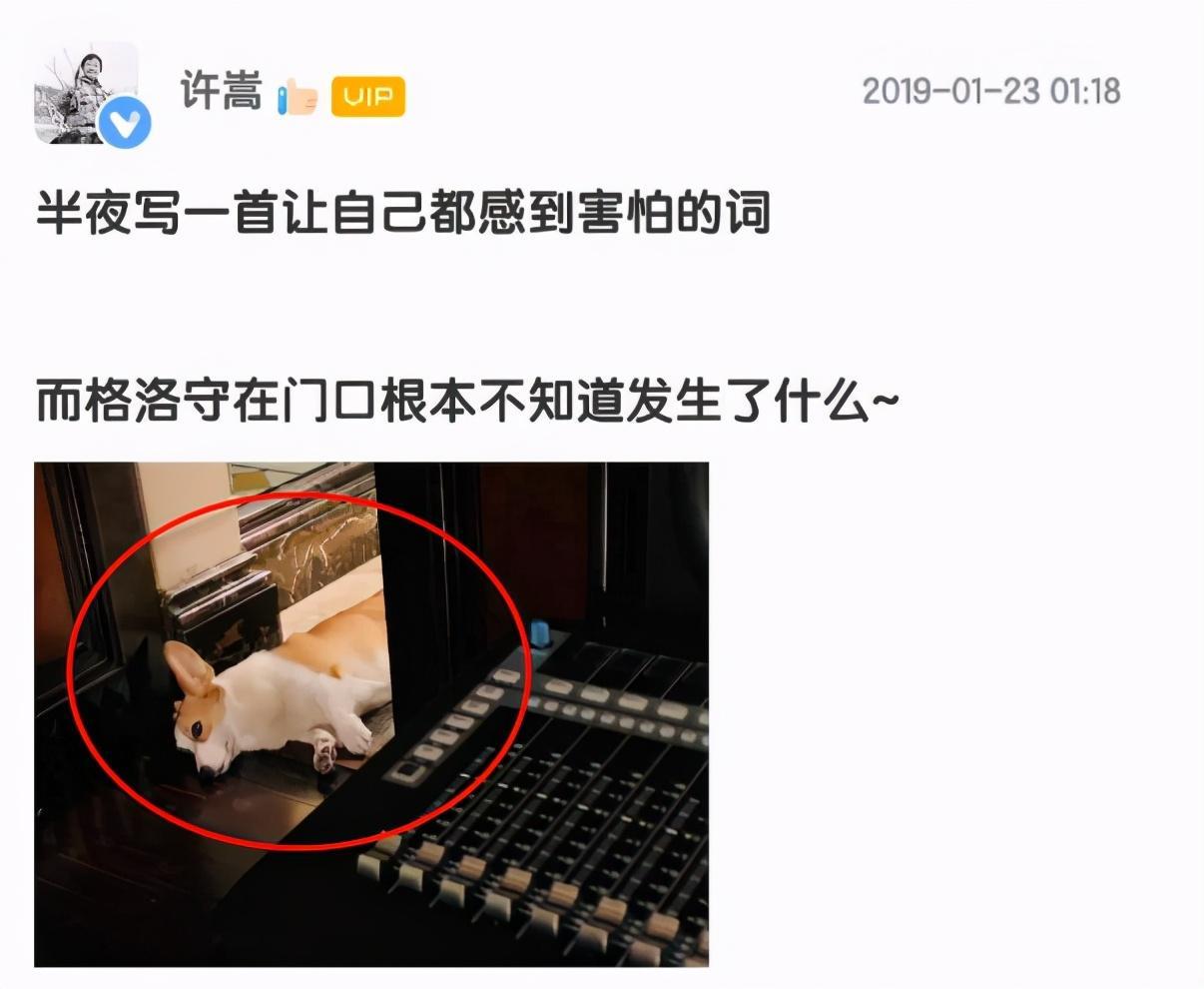 比如,黄龄和许嵩的狗狗合影: