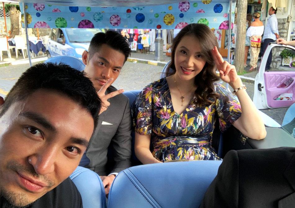 如果想要更低调高级的秀恩爱,还可以试试在穿搭中融入相容的元素。比如简单的经典花纹,女人可以直接穿在裙装中,男士用在衬衫、T恤或是裤装中,就能打造出呼应的和谐感。图中林丹的衬衫和谢杏芳的裙子,就利用了条纹这类印花元素,时髦又相配。