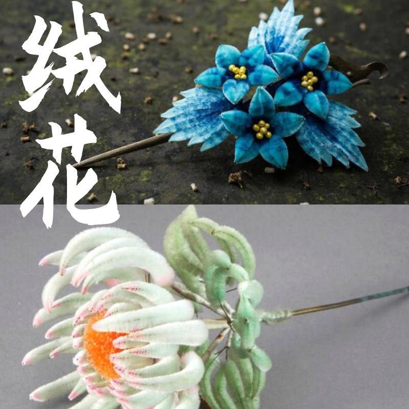 绒花,谐音荣华,听着十分吉祥,因为是给宫廷做的贡品,又称为官花,在民间是逢喜事戴的,又称喜花。