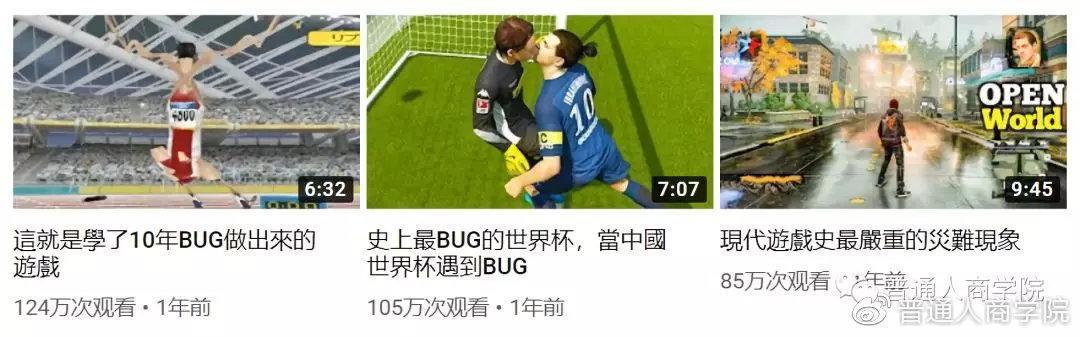 《這就是學了10年BUG做出來的遊戲》,播放量124.5万,点赞2.1万,评论1126《史上最BUG的世界杯,當中國世界杯遇到BUG》,播放量105.9万,点赞1.3万,评论814《現代遊戲史最嚴重的災難現象》,播放量85.9万,点赞9626,评论1777