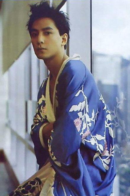 这张算是年轻时的颜值巅峰了,随意的“鸡窝头”配上蓝色系的花睡袍,眉毛是现在很流行的,帅哥果然什么发型都是帅的!