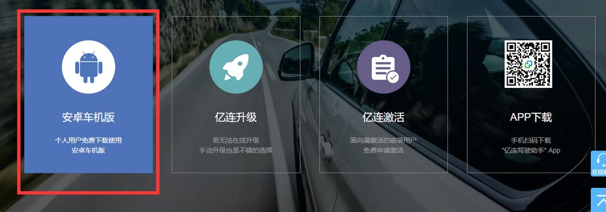 首先登录亿连官网,找到车主服务——安卓车机版(现在仅支持安卓用户),下载软件“安卓车机版”软件。