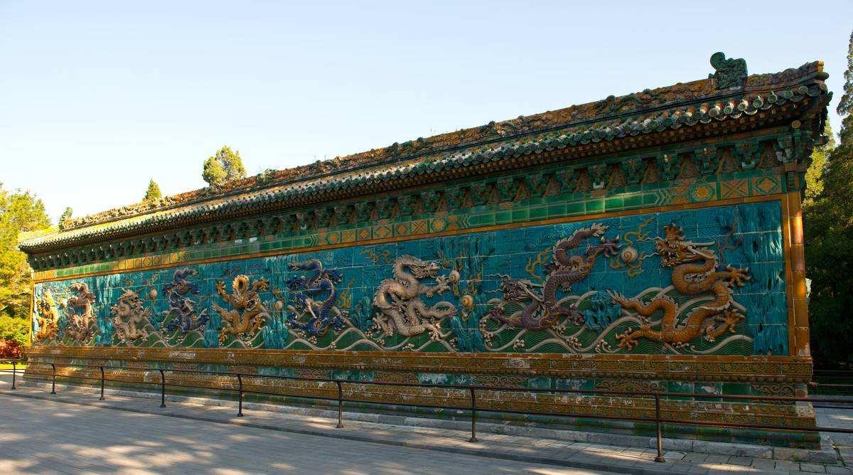 北京北海九龙壁,原为大圆镜智宝殿真谛门前琉璃照壁,是建筑最精、构图最美的一座双面琉璃龙壁,为清乾隆二十一年所建,建于公元1756年,已有二百多年历史;