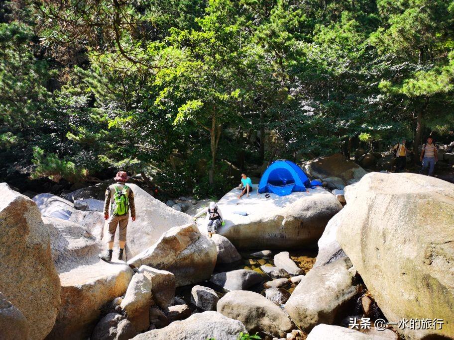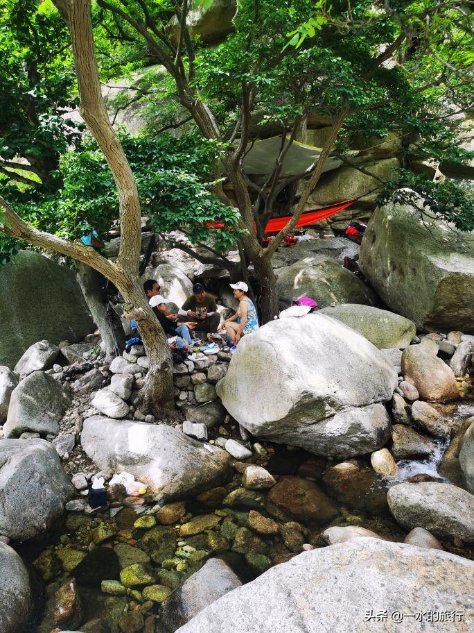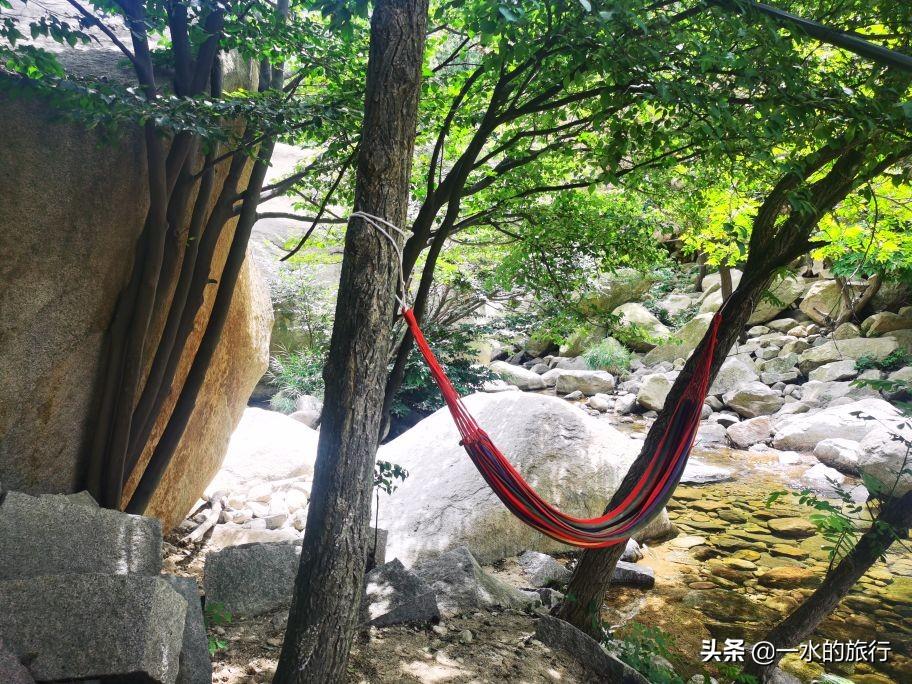 下午3点左右,我们沿河谷回返,沿途看到好多自驾而来的青岛市民,三五成群,在小溪边野餐,在帐蓬、吊床上小憩,好不惬意。