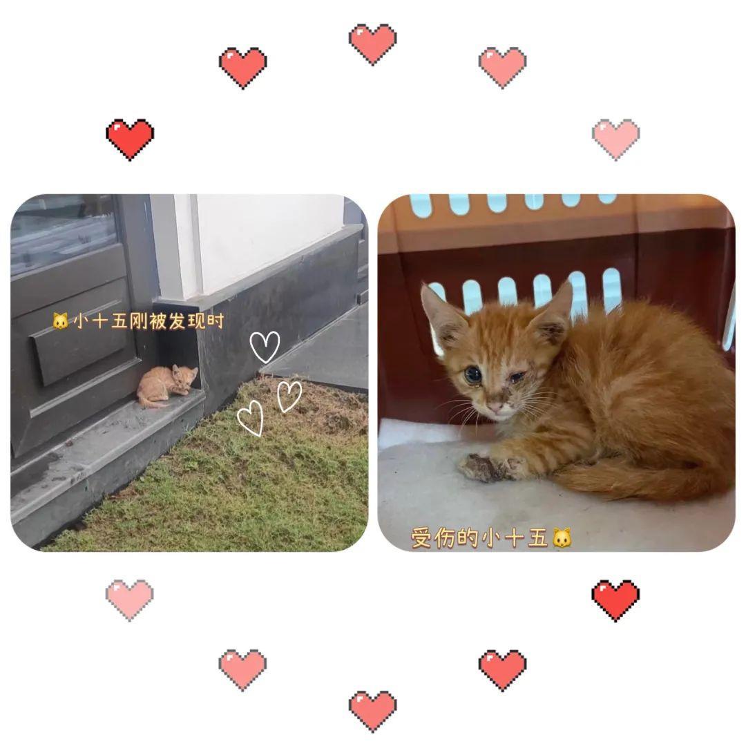 初见“小十五”,它瘦弱的小身体瑟瑟发抖地缩在一个角落,身上共有五处伤口。最严重的一处是左爪上的咬痕,大约有5厘米长,伤口就那样裸露在寒风中。