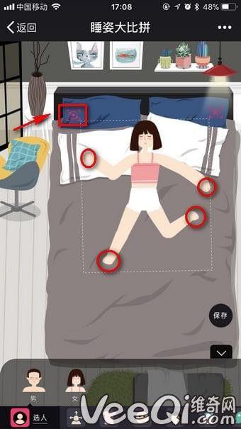 通过移动四肢来调整你的睡姿,还可以点击左上方来调整身体方向