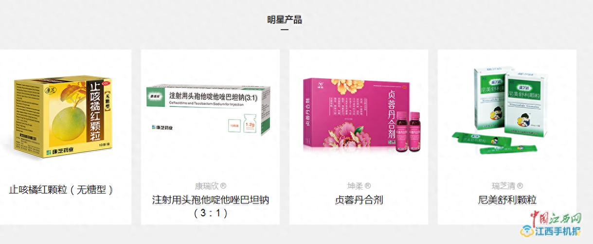 中国江西网记者在尼美舒利颗粒的生产厂家海南康芝药业官方网站看到,包括尼美舒利颗粒在内的3款尼美舒利药品被归类在成人系列,网站上显示尼美舒利颗粒为该药厂的“明星产品”。