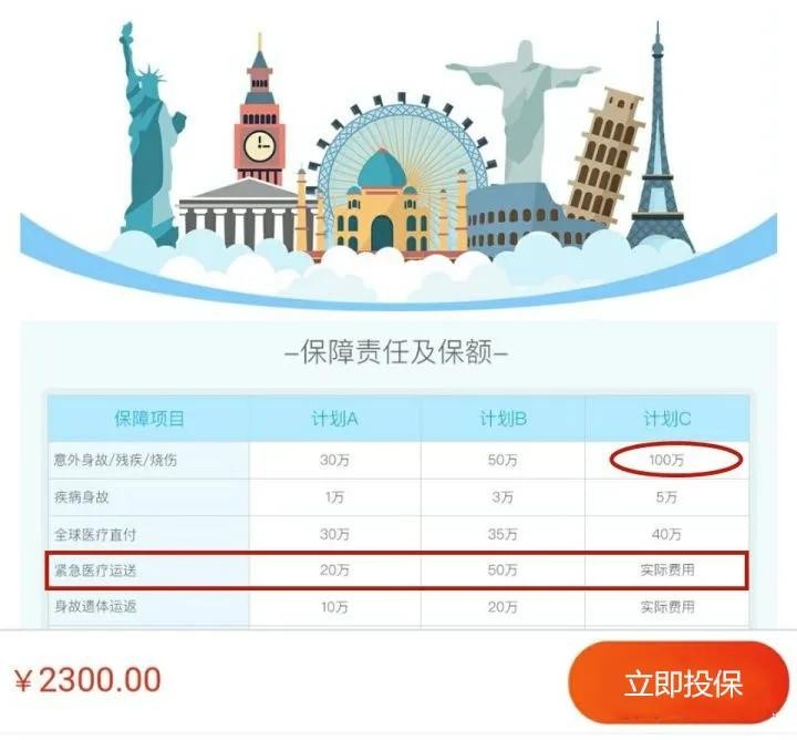 这个险并不贵,100万保额,就2000多块钱,在国外身患重病,不得不紧急医疗转运时,才会触发条款。