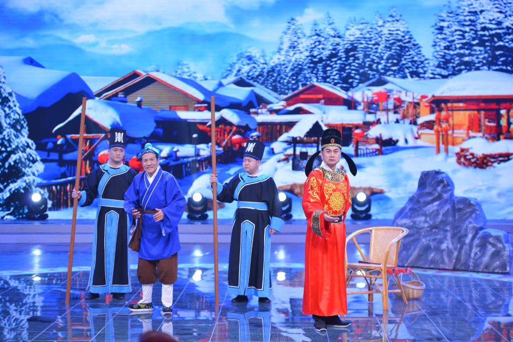 快板《祖孙三代闹元宵》节目,祖孙三代、爷孙五人用观众喜闻乐见的快板形式聚焦时代大主题,从河北日新月异的发展,到京津冀协同发展取得的新进展,再到北京冬奥会成功举办、党的二十大胜利召开、神舟十五号发射成功等国家大事,从个体观察出发,展现家国共奏、同谱新篇的寓意。