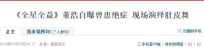 搜狐娱乐|《全星全益》董浩自曝曾患绝症 现场演绎肚皮舞.2014