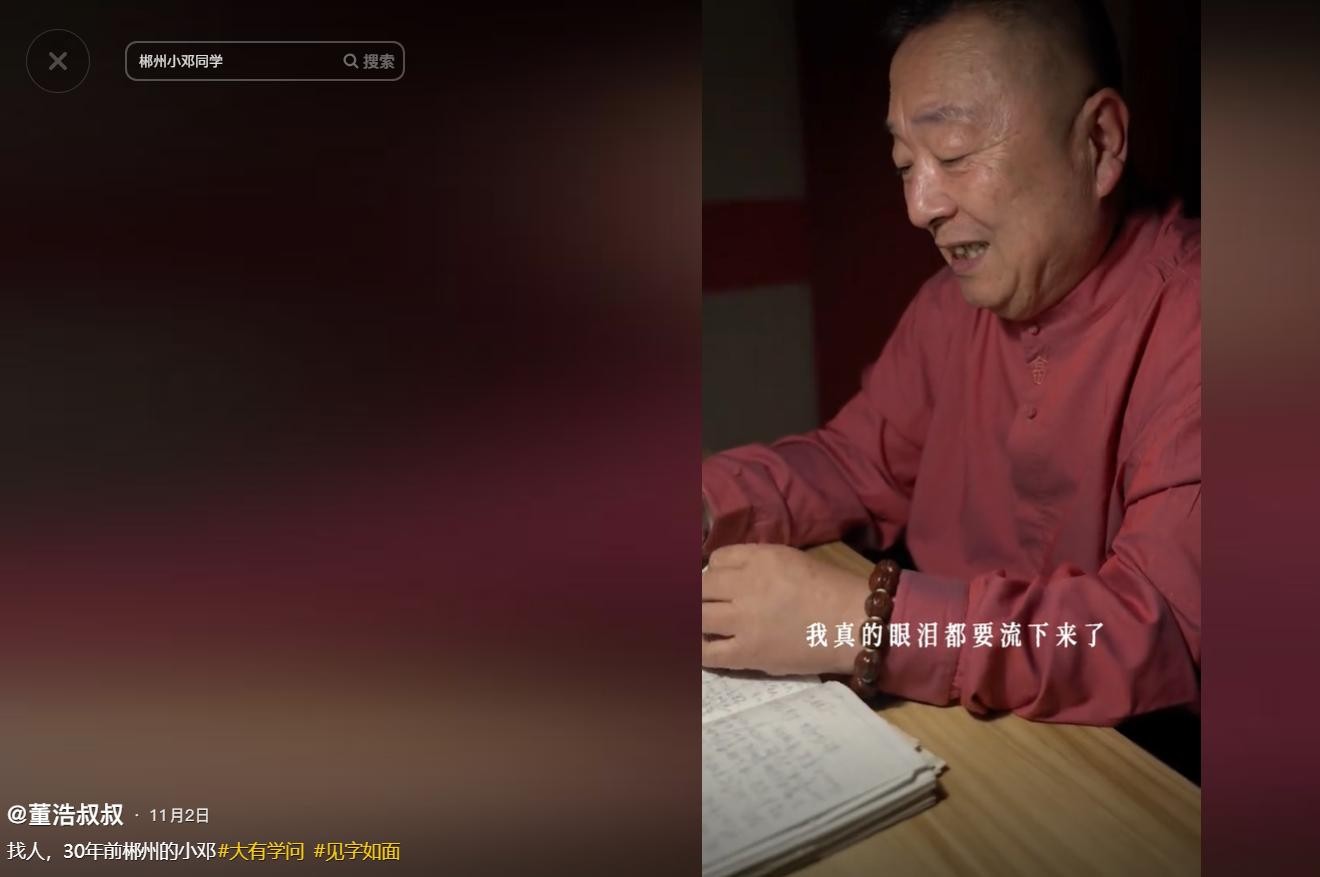 前两个月,董浩发布了一则视频,寻找30年前给自己写信的小朋友。