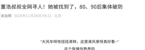 法治网|董浩叔叔全网寻人!她被找到了,80、90后集体破防.2024