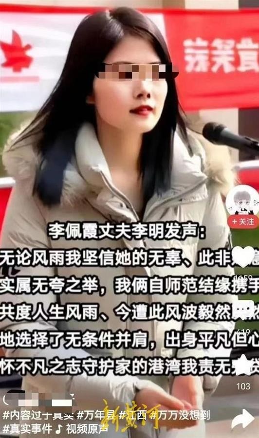 此外,日前网络上还出现了“李佩霞的丈夫”发声的消息。有自媒体在7月30日发布《李佩霞的丈夫李明终于发声了,同情妻子遭遇,不会丢下老婆不管》的文章。文章称,李佩霞丈夫李明发声:“无论风雨我坚信她的无辜、此非她意,实属无夸(奈)之举,我俩自师范结缘携手共度人生风雨、今遭此风波毅然决然地选择了无条件并肩。”有多家自媒体转发了此文。