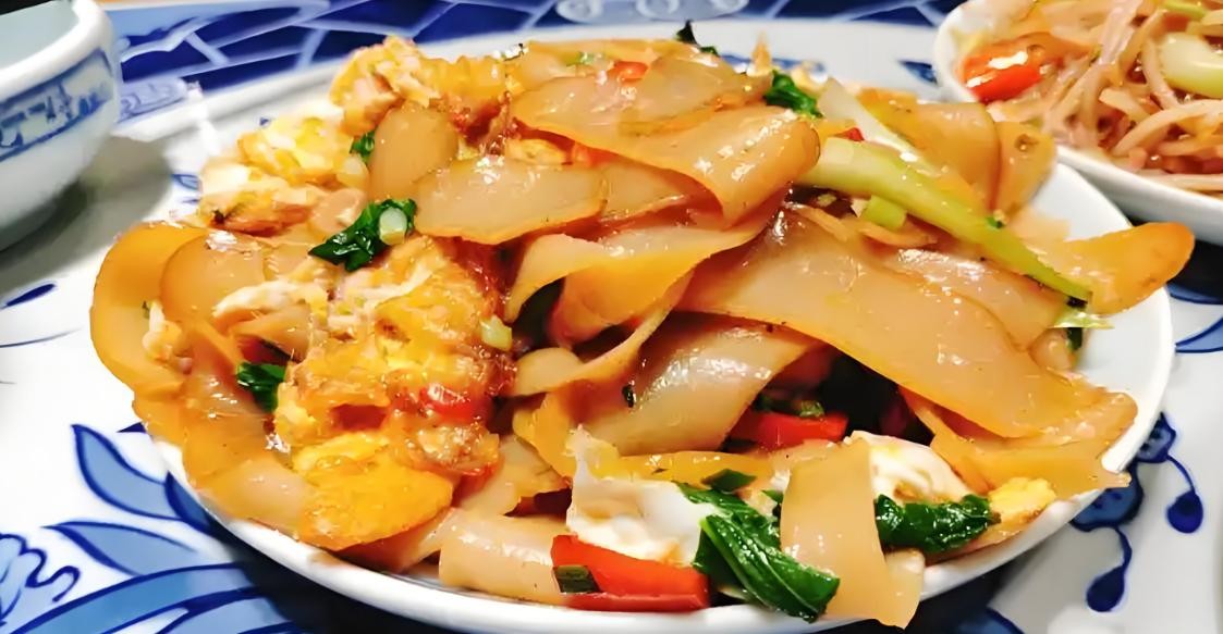 碱水粑是用大米磨浆,再加入碱水制成的。它的颜色微微泛黄,质地柔软而有韧性。碱水粑的烹饪方式多样,可以炒着吃。在炒制过程中,会加入腊肉、青菜等食材。腊肉的油脂渗透到碱水粑中,增添了浓郁的肉香,青菜则带来了清爽的口感,整体搭配丰富又美味。