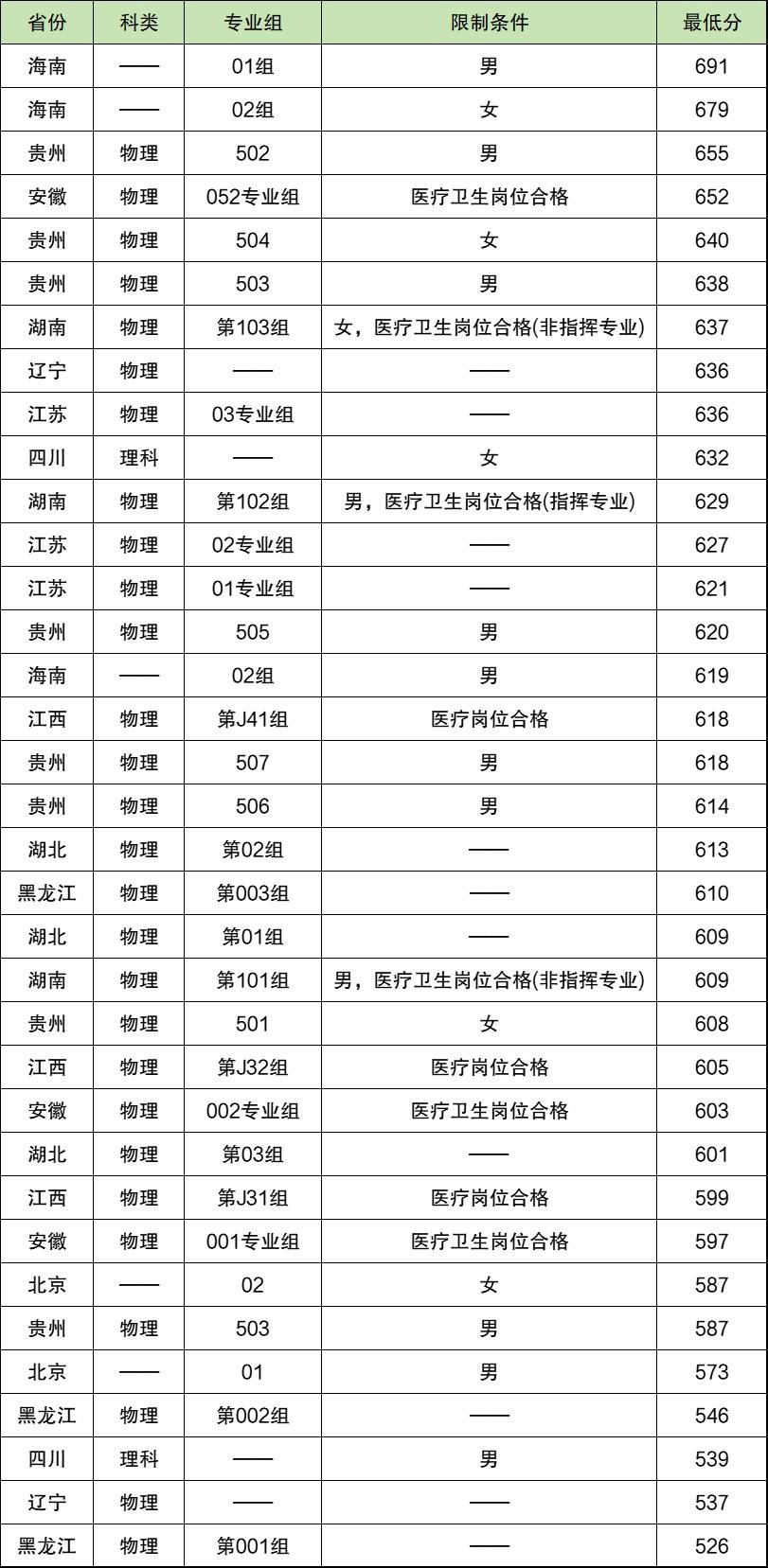 2024年海军军医大学在全国各省本科提前批录取分数线为:526分-691分。