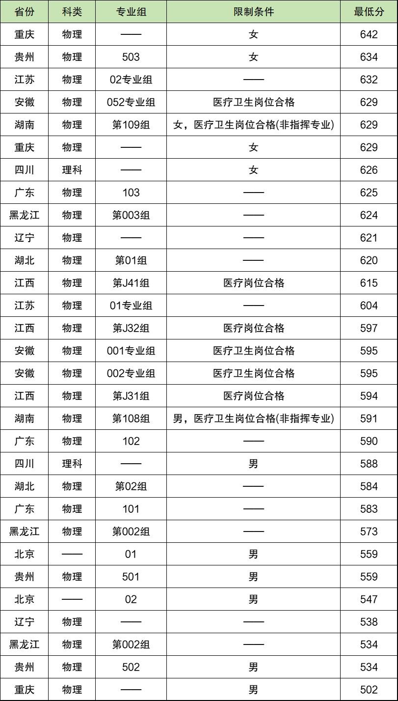 2024年陆军军医大学在全国各省本科提前批录取分数线为:502分-642分。