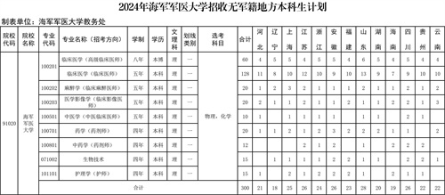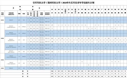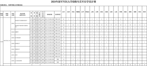 2025年军医大学的招生计划暂未公布,2025年考生可以通过2024年的招生计划来判断自己能报考哪些专业,具体的招生计划如下: