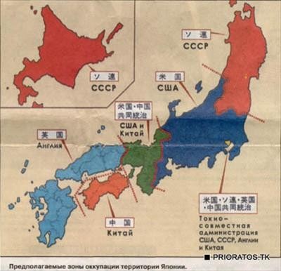 其中有不少共同占领区,像东京都由美、中、苏、英共同占领,大阪府则由由英国和中国共同占领。本来分治计划得到了大部分同盟国的认可,可是最后却计划泡汤。