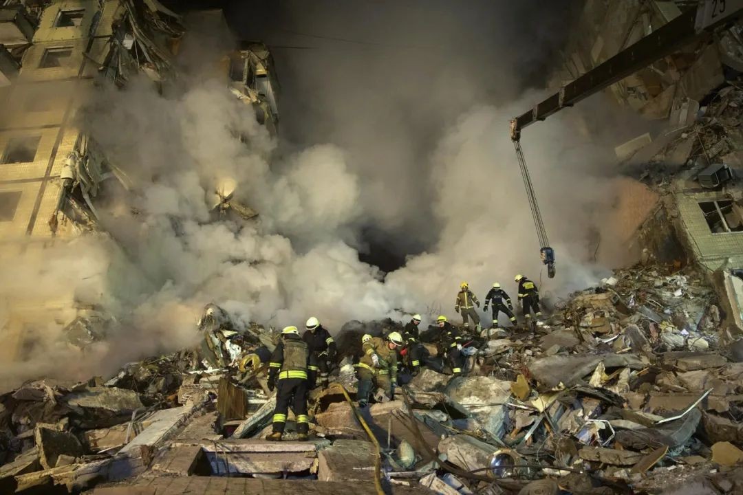 ▲2023 年 1 月 14 日,在乌克兰东南部城市第聂伯罗,一枚俄罗斯火箭击中一栋多层建筑,紧急救援人员正在清理瓦砾,许多人被埋在废墟中(上图),一名妇女的尸体躺在瓦砾下,只有手露在外面(下图)。