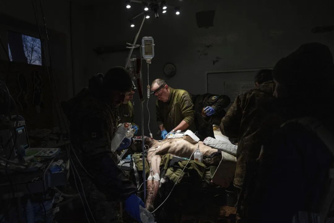 ▲2023 年 1 月 9 日,乌克兰顿涅茨克地区的一家医院,军医正在治疗一名从战场撤离的受伤战友,但他最后没有生还。
