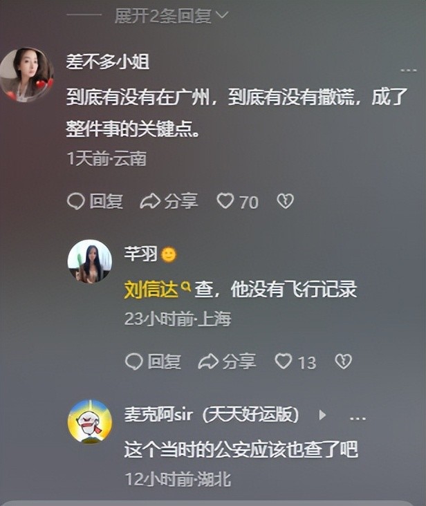 更有网友表示“到底有没有在广州,到底有没有撒谎,成了整件事情的关键点”,现在网友们的心思都放在林生斌说的话究竟是真是假,所以现在的舆论倒向都是在刘信达这边,更多网友相信刘信达的判断。