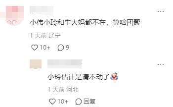 有网友说,小玲小伟牛大妈都不在,算什么团聚?还有网友调侃道:小玲现在估计一般人是请不动了。为啥这样说呢?