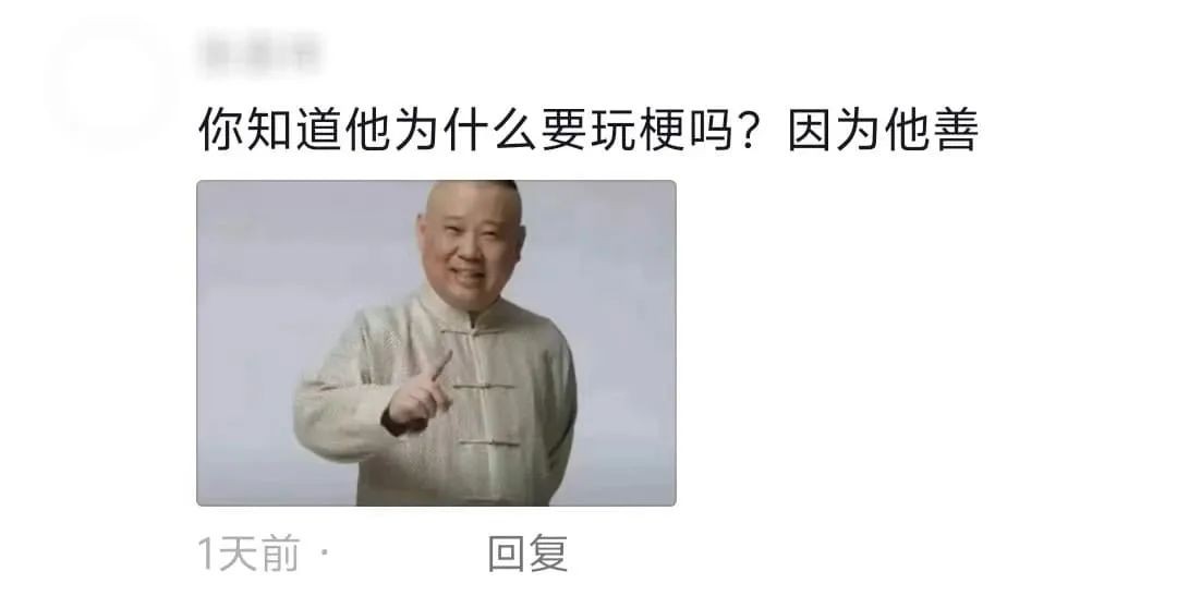 总之,你可以把「因为他善」看作成一个万能的评论回复公式,要的就是一种“已读乱回”的效果。