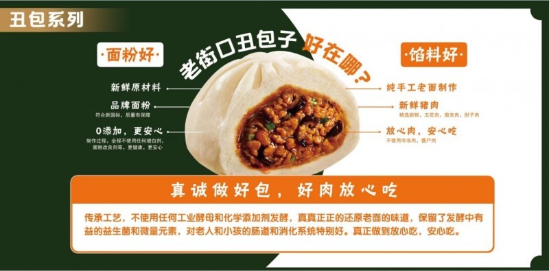“丑包王”项目凭借其丰富的产品线、独特的风味以及南北融合的特色,迅速在市场上崭露头角,赢得了广大消费者一致喜爱与好评。老街口公司始终坚持“现蒸现包才好吃”的核心理念,致力于为消费者提供新鲜、健康、美味的早餐选择,让每一口都成为味蕾的享受。
