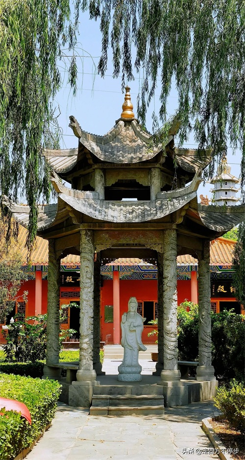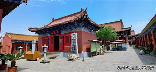 进的门来,左拐便是“法界同兴”影壁,进了山门依次是钟鼓楼、天王殿、大雄宝殿、藏经楼,两侧为地藏殿、观音殿、东西寮房、斋堂等。